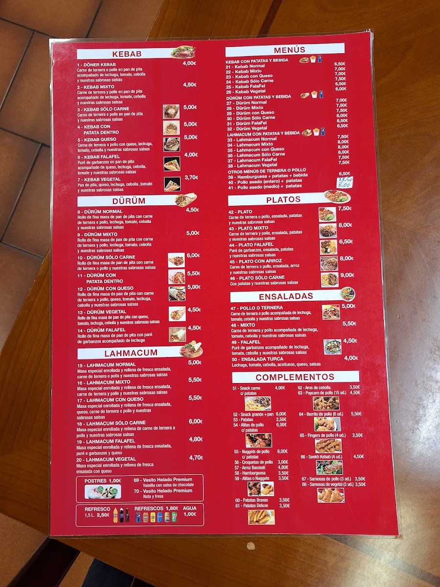 As you step inside, you’re greeted by friendly staff ready to serve you generous portions of dishes that embody the very essence of Turkey. A favorite among locals is the Plato De Pollo, a zesty plate of chicken served alongside fresh salad, crispy potatoes, and their scrumptious signature sauces—all for just €7.50. For those looking for a hearty meal, the Plato Mixto, featuring a delicious blend of chicken and beef, is sure to satisfy your hunger and delight your taste buds for just €8.00.